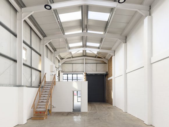 The property comprises a warehouse / trade counter unit of steel portal frame construction with clad elevations. Access to the property is via a full height roller shutter door or separate staff / trade entrance leading to ground floor offices. The warehouse accommodation has a clear height of 6.6m to the underside of the haunch rising to 7.5m at the apex. The warehouse space benefits from roof lights, concrete floor, 3 phase power and LED lighting. Externally there are 2 allocated car parking.
